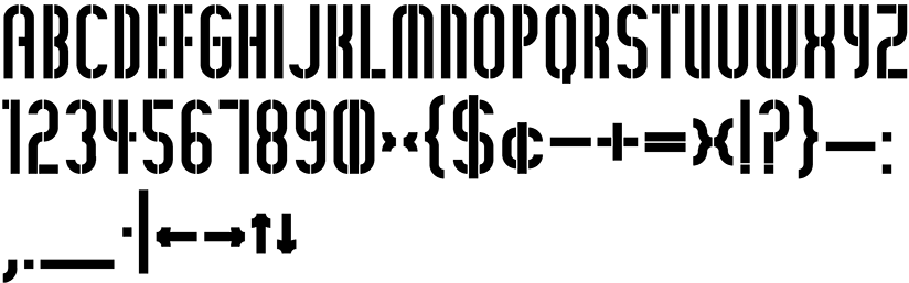 Stenciled, condensed and bold; benefits from large display usage. First letters appeared in various issues of France magazine. Further realized while exploring ideas for a jazz album cover.